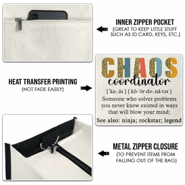 Chaos Coordinator – 13oz Tote Bag – Gifts For Women – Canvas Tote Bag With Zipper