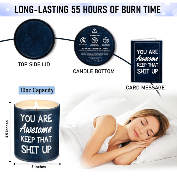 - 10 oz. Typical burn time is approximately 50 hours, ensuring that you can enjoy its enchanting scent for many evenings to come.